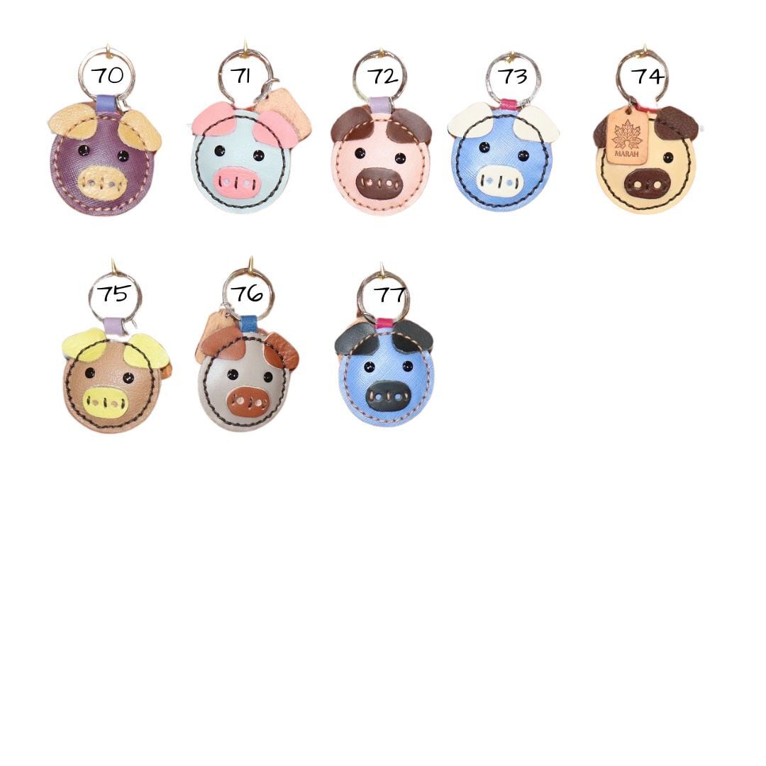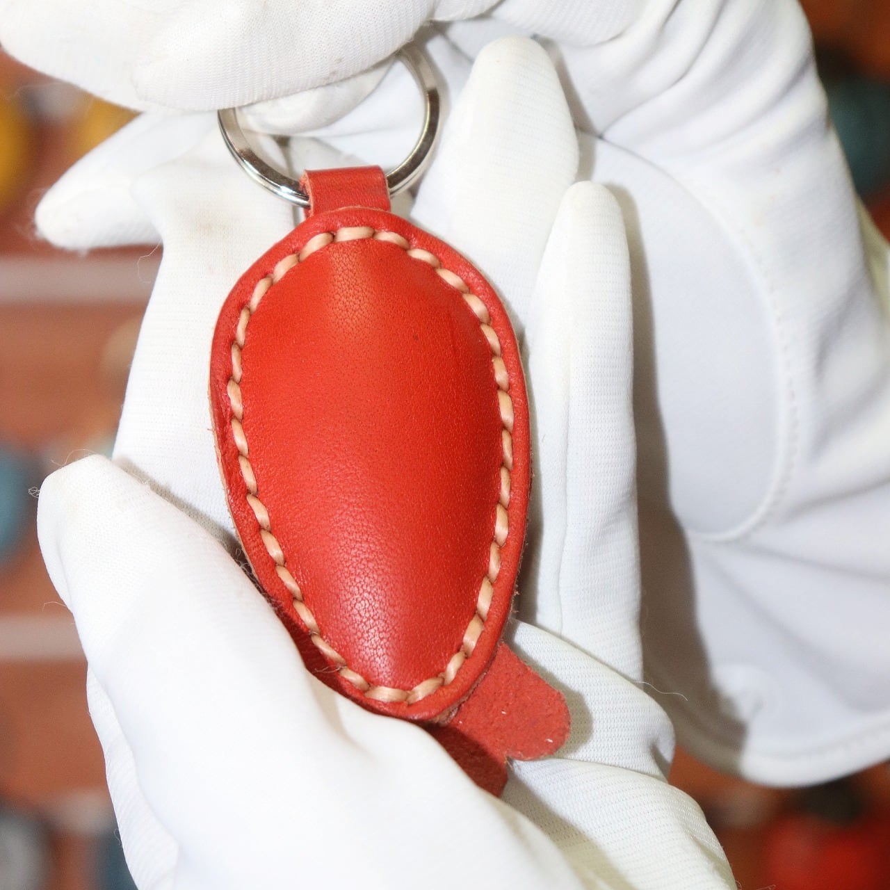 本革キャラクターキーホルダー。可愛らしいデザインが特徴で、本革素材を使用したハンドメイド商品です。クロコダイル革の本場、タイ製の逸品となっており、その品質は折り紙つきです。使い込むほどに味わい深くなる経年変化を楽しむことができ、あなたのスタイルにぴったりなアクセントを加えてくれます。
